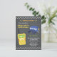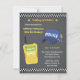 Um design convite de aniversário com um walkie talkie amarelo e um boné da polícia com crachá ao lado. Elementos verificados decoram a borda do convite. Perfeito para uma festa temida da polícia. Personalizar com detalhes da parte em modelos de texto fornecidos.