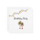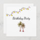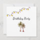 Convite de aniversário de praia tropical, com palmeiras elegantes e luzes de cordas design num fundo branco. Com letras de tipografia personalizáveis, você adiciona suas próprias informações. Um convite glamouroso para planejar sua celebração especial.