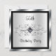 Convidados de festa de aniversário 55 para mulheres e meninas. convites de festas personalizados elegantes, glamourosos e sofisticados, personalizados e personalizados para mulheres/meninas com um design de prata impressionante com um quadro de fronteira preta impresso sobre um fundo gradiente prateado brilhante. No centro está uma impressionante imagem impressa de um padrão prateado simétrico de flores e espirros com uma pedra bonito de diamante no centro. O reverso deste modelo tem o mesmo design de fundo preto e prateado, na parte inferior da placa está uma imagem de espiral prateada bonito. Um design adequado para qualquer mulher, e qualquer idade. Cartas perfeitas para as celebrações de mulheres e meninas. Um design moderno da moda. Essas placas originais, únicas, brilhantes, são impressas/decoradas em ambos os lados/impressão frente e verso. Todo o texto é totalmente personalizável para atender às suas necessidades. Se precisar de ajuda para personalizar seu produto, entre em contato comigo pela loja e eu ficarei feliz em ajudá-lo.