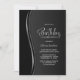 Convide seus amigos e entes queridos com este convite de aniversário negro e prateado moderno. A área de texto personalizável neste modelo de convite permite que você inclua facilmente todos os detalhes necessários para sua celebração especial de aniversário, incluindo as informações de data, hora, local e RSVP. Uma variedade de tipos de papel e estilos de canto estão disponíveis para seus convites exclusivos, juntamente com a opção de download se você preferir um formato digital.