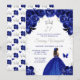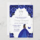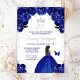 Este elegante e glamouroso convite de aniversário apresenta uma bela princesa com pele escura num vestido azul escuro de bola. O texto combina o script manuscrito e as fontes sans serif modernas para um aspecto elegante e sofisticado. Os arranjos florais, borboleta e confete prateado criam a mistura perfeita de rústico e chic. Gráficos por www.etsy.com/uk/shop/SunflowerDayLove