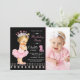 Princesa bailarina tutu convite de aniversário com uma adorável princesa bailarina vestindo um tutu rosado, coroa prateada e corda de pérolas em um bonito fundo rosa e pérolas pretas. Você pode personalizar facilmente este convite de aniversário da princesa bailarina para seu evento simplesmente adicionando seus detalhes e fotos. Você também pode alterar a cor de fundo. Este é um design impresso sem pérolas reais, arcos, etc.