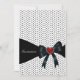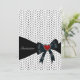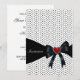 Modelo de convite de festa de aniversário ou evento com bolinhas pretas e brancas e laço preto. Este design de modelo funciona bem como um convite para uma festa de aniversário, festa de cocktails, festa de feriado, festa de aposentadoria, festa de formatura e qualquer outra ocasião especial. Personalize com sua escolha de estilo de fonte e cor da fonte, e cor do fundo.