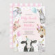 Animais da Fazenda Menina Rosa Convite de aniversário de Barnyard Rapariga Todos os designs são © PIXEL PERFECTION PARTY LTD