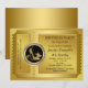 Convite de festa de aniversário e evento de sapato de salto alto dourado. Convite de ingresso dourado. Você pode personalizar facilmente este convite de ingresso de festa de aniversário de sapato de salto alto dourado e ingresso de evento elegante, adicionando seus detalhes no estilo de fonte e cor, texto e layout de sua escolha.