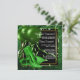 Convite de festa de aniversário verde esmeralda dourado com sapatos e balões verdes esmeralda bonitos em um fundo verde, preto e dourado elegante com serpentinas e confetes. Esses convites de festa de aniversário verde elegantes são facilmente personalizados para o seu evento, basta adicionar seus detalhes no estilo de letra que preferir.