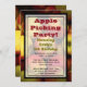 Um convite de aniversário de colheita de maçã com um fundo temático de maçã. O fundo é uma bela fotografia de um monte de deliciosas maçãs vermelhas e amarelas frescas e suculentas. As maçãs estão amadurecendo e têm uma combinação de cores vermelhas e amarelas misturando-se para criar um bom contraste colorido. Personalize com os detalhes do seu partido.
