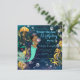 Convite de aniversário de sereia com adorável sereia étnica com diamante tiara e pérolas em um belo brilho azul e dourado em fundo submarino. Este belo convite de aniversário de sereia é facilmente personalizado para o seu evento simplesmente adicionando os seus detalhes no estilo de letra, cor e texto da sua escolha. este é um design impresso sem joias, arcos, brilho, etc.
