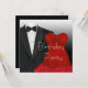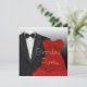 Convite de festa elegante de smoking preto e vestido vermelho. Este convite de festa de vermelho e preto apresenta um smoking preto e vestido de festa vermelho é facilmente personalizado para o seu evento, adicionando os detalhes do seu evento, estilo de fonte, tamanho e cor da fonte e texto. Por favor, note que todos os desenhos de cartões e convites que você encontrará no Zazzle são gráficos impressos sem jóias reais, laços, relevos, rebaixados ou peças ou partes adicionadas.