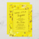 Amarelo brilhante e divertido com convite de aniversário Surpresa personalizado com brilho dourado.