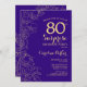 Convite de aniversário de 80 de Surpresa Dourada Floral. Design minimalista moderno com sotaques botânicos e letra de escrita tipográfica. Simples cartão de convite floral perfeito para uma festa surpresa na moda. Pode ser personalizado para qualquer idade.
