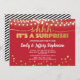 QUALQUER IDADE. QUALQUER EVENTO. Todo texto sob a ouro "É uma surpresa" é editável. Elegante convite de festas surpresa de ouro com design de corda em fundo vermelho. Design. Receba este belo convite agora!