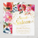 Convite Festa de Aniversário de Sweet 16 | Floral Dourado