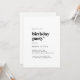 Este moderno convite de aniversário de tipografia negra é perfeito para um evento simples. O design minimalista preto-e-branco apresenta uma fonte retrô, mas contemporânea, com um toque único da boêmia rústica. Perfeito para qualquer estação. Mantenha o mínimo possível ou adicione seus próprios gráficos e trabalho de arte.