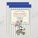 Um convite juvenil mostrando um triciclo em aquarela com um buquê de balões coloridos. O fundo é uma faixa azul e bege com uma borda de toldo recortada. (Vetores por Vecteezy). O cartão é fácil de personalizar com sua redação, fonte, cor da fonte, forma e tipo de papel. Não é exatamente o que você está procurando? Todos os nossos produtos podem ser personalizados para atender às suas necessidades sem custo adicional. Basta entrar em contato conosco em heartfelthelper@gmail.com. Produtos coordenados disponíveis: Basta perguntar!