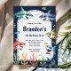 Faça um salto com este divertido convite de aniversário para tubarões-d'água — perfeito para o grande dia do seu explorador do oceano! Apresentando um tubarão pintado à mão rodeado por ondas e bolhas azuis de aquarela, este design submarino dá o tom para uma emocionante celebração com tubarão ou oceano. Personalize facilmente o nome, a idade, os detalhes da festa e as informações de RSVP do seu filho. Excelente para aniversários de meninos de qualquer idade, de bebês a crianças grandes!
