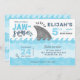 Convite de aniversário de tubarão. O texto é totalmente personalizável. Você pode alterar cores e estilos de fontes.