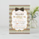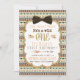 Convite de festa de um ano do menino tribal selvagem com flechas tribais e gravata borboleta marrom em um fundo com design indígena americano sudoeste Azteca. Você pode personalizar facilmente este convite de primeiro aniversário tribal simplesmente adicionando os detalhes do seu evento. Este é um design impresso sem laços reais, glitter, etc.