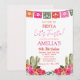 Convidado de aniversário de uma garota mexicana Fiesta. Celebre seu aniversário de querido com esses convites de festas mexicanos tão bonitos! Este adorável design apresenta cacto e flores.