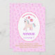 Placa de convite de aniversário unicórnio. Texto pronto para ser personalizado.