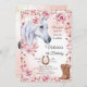 Convite de aniversário de vaqueira de flores rosa de cavalo branco para a garota. Muito bom para a vaqueira, equestre, festa de aniversário temática de pônei.