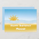 Convide sua família e amigos para um cheio festa de aniversário de diversão no verão com este belo convite mostrando sol, areia e água.