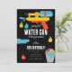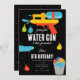 Uma espingarda de água e um tema de festa de aniversário de balões. Um design de convite de aniversário de criança personalizado perfeito para uma festa de aniversário de Verão. Personalize esta arma de água "Vamos encharcado" e o convite de aniversário de balões com o seu próprio texto e faça dele o seu próprio! Ideal para crianças aniversários!