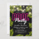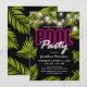 Mergulhe em sua festa de verão glamorosa com nossos convites de luxo para festa de piscina ou praia para adultos. O fundo preto elegante, que pode ser personalizado de acordo com sua preferência, combinado com luzes cintilantes e folhas de palmeira tropicais elegantes, certamente impressionará. O motivo de letreiro neon rosa e branco adiciona um toque especial ao design. Personalize facilmente para atender às necessidades da sua festa e deixe que este modelo moderno faça da sua festa o assunto da cidade.