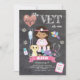 Festa de aniversário de mascote de chalkboard - O gato está definitivamente fora do saco nesta. O convite de aniversário desta rapariga é o remédio certo para dar à tua filha a celebração que ela merece. Apresentando um ocupado veterano feminino rodeado por todos os seus amigos pacientes de animais. Não há necessidade de um cheque, o convite de aniversário desta rapariga, vai tornar o dia inesquecível!