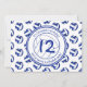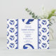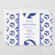 O convite de aniversário de voleibol feminino é perfeitamente personalizável e apresenta um padrão de volicbolas brancas e azuis na frente e no verso - personalizam seu texto de convite de aniversário sobre fundo branco com sotaques azuis - os painéis azuis das bolas de volleyball são misturados com um bonito padrão caleidoscópico floral, e os painéis brancos de voleibol são misturados com um padrão de espiral de abstrato ly - por katz_d_zynes