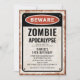 Convite Festa de aniversário de zumbi com placa de aviso e