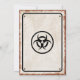 Convite com tema de surto de zumbis com aparência vintage, placa de aviso enferrujada, símbolo de risco biológico e parafusos.