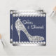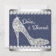 Convites de festa de aniversário elegantes e cintilantes de salto alto com jeans azul e diamantes. Este convite de festa de aniversário denim e diamante é perfeito para uma festa de aniversário de sweet sixteen, Quinceanera, convites de festa de aniversário de qualquer número para meninas e mulheres, ou festa ou evento com tema denim e diamante. Adicione seus detalhes na frente e/ou verso adicionando detalhes do evento, estilo de fonte, tamanho e cor da fonte e texto.
