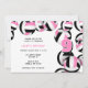 Este convite de festas temático de vôlei apresenta volichões cor-de-rosa, preto e branco agrupados nas bordas direita e superior na frente e um cluster de solteiros que cobre a parte posterior do convite - personalize os detalhes do partido em coordenação de cores em fundo branco - por katz_d_zynes