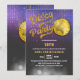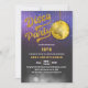 © Socialite Designs Inc. & LICENSORS. Celebre uma festa de aniversário disco convidando os convidados com este convite divertido e retrô para a festa de aniversário disco. As cores são dourado, branco, rosa, roxo e cinza. O design incorpora uma bola disco dourada e luzes de corda roxas/rosas como fundo.