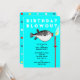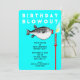 Convites criativos de festa de aniversário com tema de pesca, apresentando um peixe engraçado fazendo um desejo de aniversário.