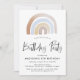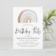 Convite Festa de aniversário do arco-íris azul e castanho