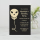 Quer seja uma celebração de época assustadora para um aniversário estilo gótico, faça dele uma festa para se lembrar desses convites personalizados. Eles apresentam uma ilustração de um balão de aniversário em forma de crânio em uma cor de marfim contra um fundo preto e estão prontos para serem personalizados com todos os detalhes do seu partido.