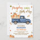 Convite de Aniversário do Caminhão Azul da Abóbora Convite do Pomar de Abóboras Festa da Colheita de Abóboras do Outono Convite de Ação de Graças