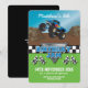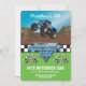 Convites de aniversário personalizados para crianças com design de caminhão monstro, bandeira xadrez e texto branco moderno que pode ser personalizado para se adequar ao seu estilo.