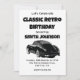 Convite de aniversário de carro retrô clássico projetado por Nisha Prabhu. Totalmente personalizável. Personalize com seus detalhes. Aumente o entusiasmo para a sua próxima celebração de aniversário com o nosso Convite de aniversário Clássico de Automóveis Retro. Este convite surpreendente apresenta uma design impressionante de um carro retrô clássico, definindo instantaneamente o tom para um evento divertido e nostálgico. As cores vibrantes e os detalhes intrincados do carro adicionam um toque de charme de safra que impressionará seus convidados. Com opções de texto personalizáveis, você pode personalizar facilmente o convite com todos os detalhes importantes do seu partido. Prepare-se para transportar seus convidados de volta no tempo e criar memórias que durarão uma vida inteira com nosso Convite de aniversário Classic Retro Car.