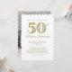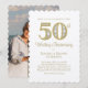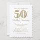 Compartilhe um pouco com seu convite de 50 anos de casamento com este elegante brilho de ouro simulado e diamantes espumantes ilustrando o número 50. Personalize todos os detalhes para fazer este convite pessoal para este evento especial. Adicione uma foto personalizada à parte traseira do cartão. A borda do cartão é ampliada para melhorar esse estoque de cartão com textura leve.