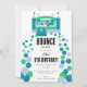 Um tema de festa de aniversário de bola de castelo saltando. Um aniversário de criança de convite de design de meninos azuis e verdes personalizado perfeito para um tema de festa de aniversário de bola de salto. Personalize este convite de aniversário do " Bouncy on over" com seu próprio texto e faça dele seu próprio! Ideal para o aniversário de crianças!