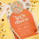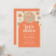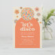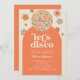 Um convite de aniversário adulto com bola retrô-disco e flores, perfeito para uma festa de discoteca ou para uma festa retrô dos anos 70.