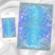 Convite de festa de aniversário de inverno com flocos de neve azul-turquesa e tipografia prateada elegante em um fundo de flocos de neve roxo e azul-turquesa. Este convite de festa de aniversário de inverno é facilmente personalizado para o seu evento, basta adicionar seus detalhes no estilo de fonte, cor e texto de sua escolha. Este é um design impresso sem glitter, joias, etc.