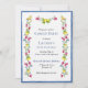 Convite de aniversário de jardim Elegante Amalfi com frutas pintadas à mão e flores comuns em jardins mediterrânicos com fronteira azul.
