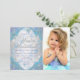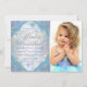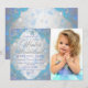 Convite de festa de aniversário de inverno com belos flocos de neve azuis e roxos e tipografia prateada elegante em um fundo de flocos de neve roxos e azuis. Este convite de festa de aniversário de inverno de flocos de neve é facilmente personalizado para o seu evento, basta adicionar sua foto e detalhes no estilo de fonte e cor e redação de sua escolha. Este é um design impresso sem brilho real, jóias, etc.