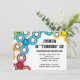 Convites para uma festa de aniversário de temas de fiantros. Todos os giradores na frente podem ser movidos ao redor, como quiser. O texto também pode ser movido. Clique no botão Personalizar para entrar no modo de edição e, em seguida, mova os elementos em torno dele de acordo.