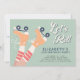 convite de aniversário legal de patinagem em roleta verde para qualquer idade que apresente "Vamos Roll!" num guião retrorreflector e uma ilustração retrorreflectora dos skates de roletes cor de laranja pastel numa rapariga que vista meias de tubos riscados. Adicione seu nome e ano de aniversário em tipografia azul.