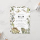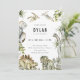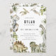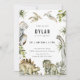 Tema legal do dinossauro, convite de aniversário. Folhagem pré-histórica de aquarela e borda de dinossauro.
